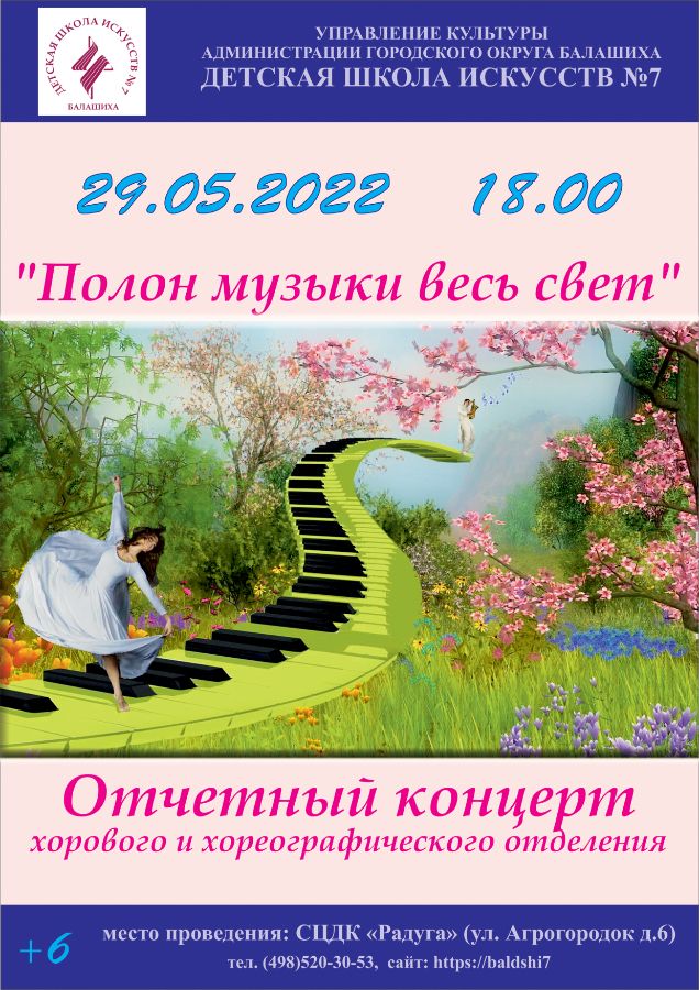 Приглашаем всех на отчетный концерт хорового и хореографического отделений "Полон музыки весь свет" в СЦДК "Радуга"!